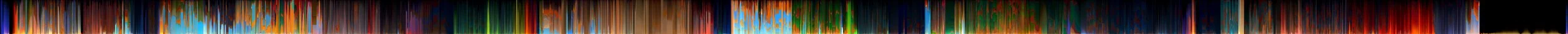 I thought it would be fun to see if it’s possible to sort of extract the color script back out of the final film as it was released to the public, to see just how consistent the final product was with the plan. My goal was a single wide, thin image where each vertical stripe represented one frame of the film, start to finish. I hoped that the overall color palette of the movie would become visible in this signature image. This turns out to be rather tricky, and I’m not aware of anyone having done it before in a satisfactory way.