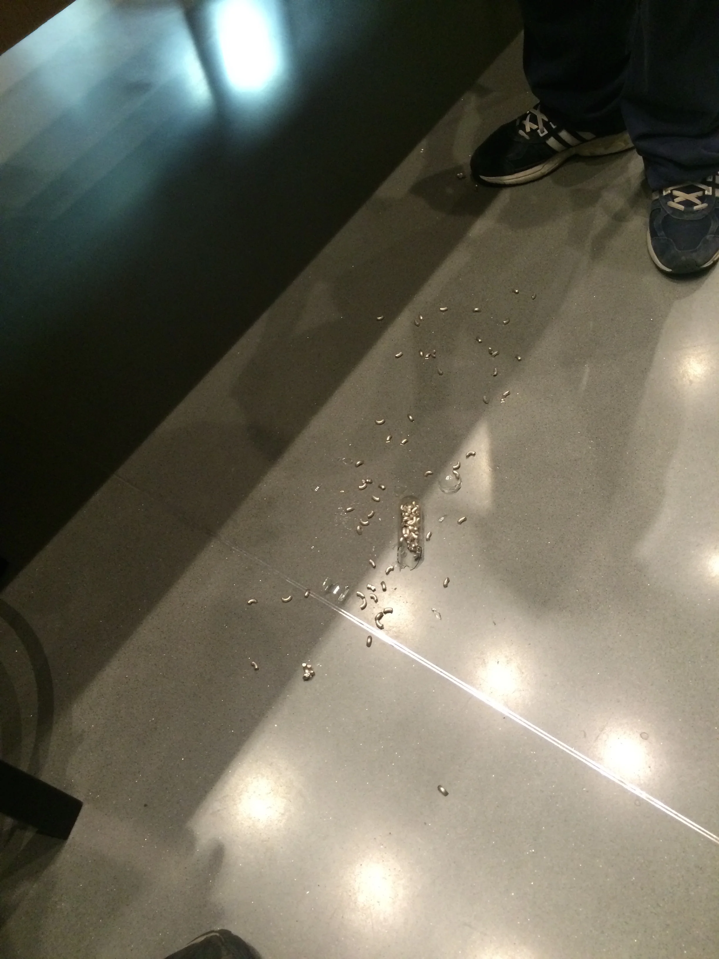 A vial of lithium accidentally broken on the floor of an Apple store in Beijing. Totally worth the whole trip just for this experience.